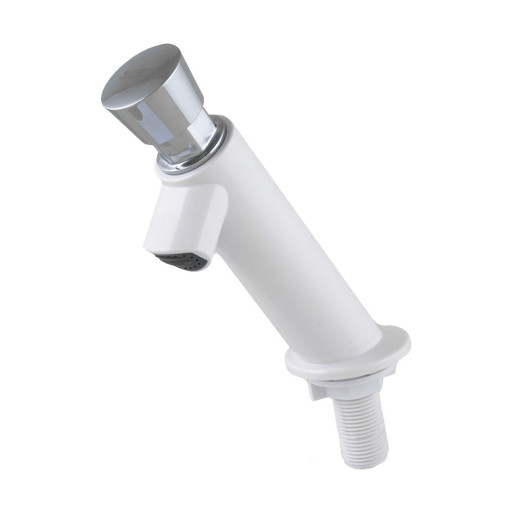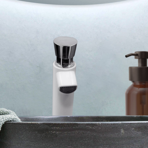 Finishing warna putih dan aksen chrome pada tap memberikan kesan modern minimalis. Spout (moncong) dilengkapi saringan aerator, air berbuih lembut dan lebih hemat air.